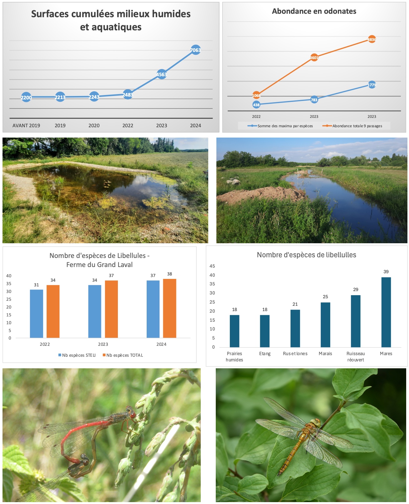 Ils nous apprennent qu’entre 2022 et 2024, les populations d’odonates de la ferme ont été multipliées par 4.